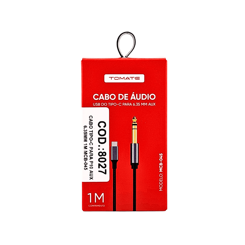 Cabo Adaptador de Áudio Tipo-C para P10 (6.35mm) AUX 1 Metro — Tomate — Modelo MCB-045 — Cód. 8027 — EAN 7908227209509