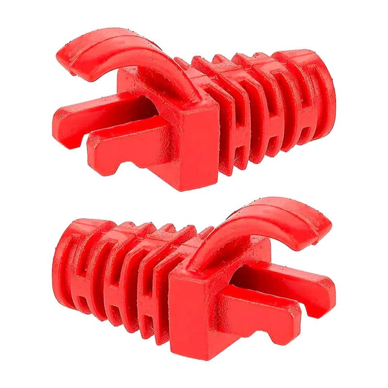 Capa RJ45 Injetada ("Boot") Vermelha da Central Network é ideal para evitar fadiga no cabo e desconexão acidental, compatível com cabos UTP Cat.5e CM, CMX e Cat.6 flexível.